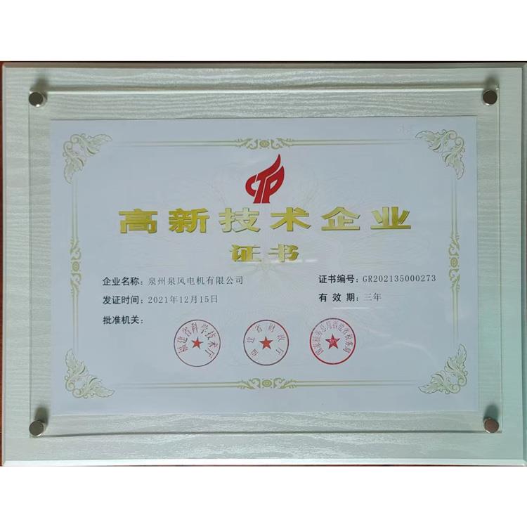 ??公司以建立現代化企業為目標,堅持“科技是首要生產力”,于2000年通過了ISO9001:2000國際質量體系認證、產品已獲得CCC強制性認證;美國UL、加拿大CUL、歐盟CE等安全認證。并獲得國家微電機產品檢測中心授予“行業監督抽查合格單位”及“九五質量水平優秀單位”,“泉風”牌風機被中國技術協會確定為 “風機行業質量十佳放心品牌”、“中國軸流風機十佳名優品牌”?!叭L”牌產品已通過福建省新產品鑒定并獲得“福建省科技成果獎”、“省級優秀新產品獎”、“省級科技進步獎”。 2006年度被福建省確認為“福建省高新技術企業”、“科技進步先進企業、“福建知名科技企業”。 “泉風”牌商標被評為“泉州市知名商標”。 2009年“泉風”牌商標被評為“福建省著名商標”。